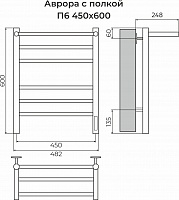 Ватикан П8 500х800 электро КС ГРАФИТ ( new встроен диммер) Полотенцесушитель TERMINUS